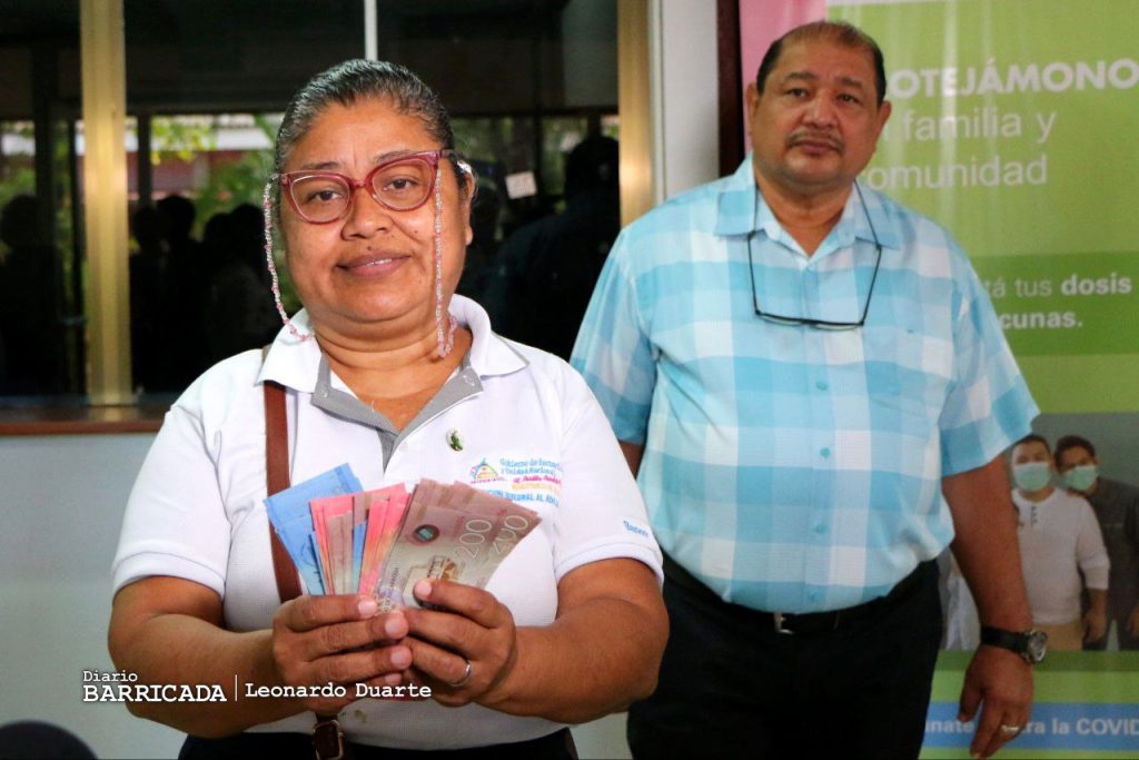 Ana Ibarra, servidora pública del MINSA agradeció al «Comandante Daniel Ortega y a la compañera Rosario Murillo por estar recibiendo nuestro salario con este aumento que nos viene a subsanar los gastos en el hogar».