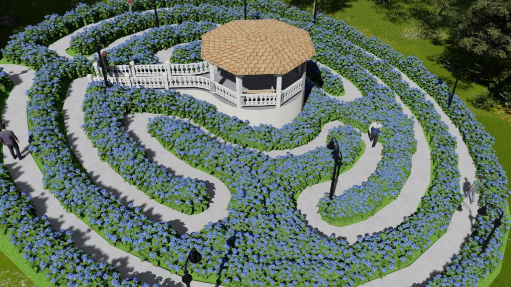 El parque tiene un diseño de laberinto formado con flores nativas del municipio. Se realizarán construcción de andenes con ladrillos decorativos, construcción de plataforma elevada en el centro del laberinto con un kiosko donde se podrá admirar el sendero de flores, se estarán sembrando dos mil plantas de la especie conocida como Mil flores, arcoiris y quinientos Cipres.