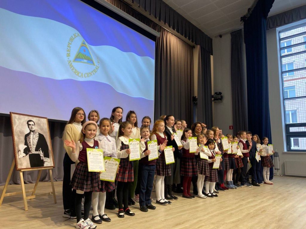 La Embajada de Nicaragua en la Federación de Rusia junto al Colegio “Cervantes” de Moscú, premiaron a los ganadores del Certamen de Declamación e Ilustración de los Poemas Darianos.