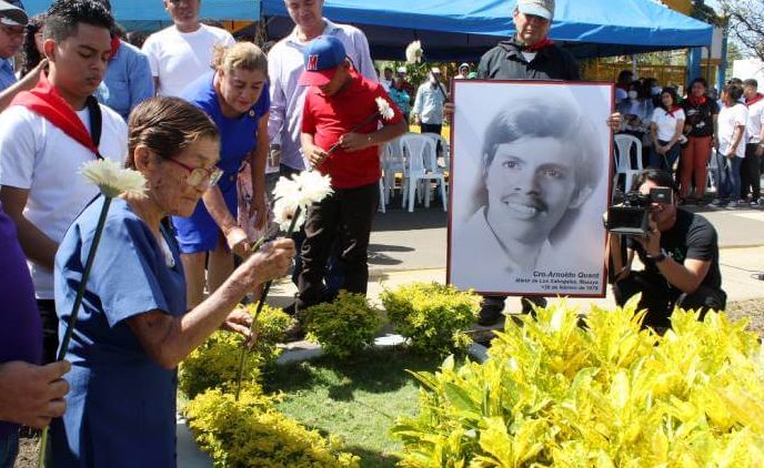 La militancia del Frente Sandinista de Liberación Nacional (FSLN) acompañó a la familia del héroe y mártir de la Gesta de Los Sabogales, Arnoldo Quant, en el homenaje por el 45 aniversario de su caída en combate.