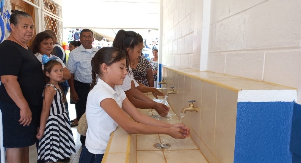 Familias junto a la comunidad educativa, autoridades del Ministerio de Educación, y gobiernos locales, inauguraron el mejoramiento y equipamiento de agua saneamiento en los Centros educativos de las comunidades rurales de Las Mercedes y San Vicente en Diriamba, Carazo.