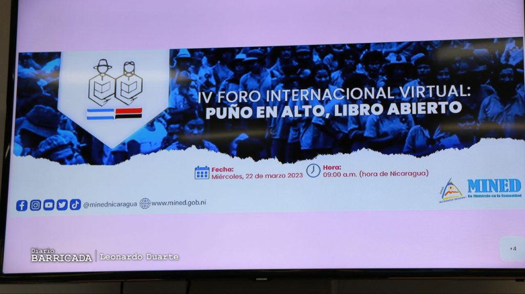 En el marco del 43 aniversario de la Cruzada Nacional de la Alfabetización el Ministerio de Educación (MINED) realizó el IV Foro Internacional Virtual: “Puño en alto, libro abierto” con la participación de educadores de jóvenes y adultos.