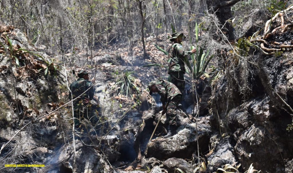 El Ejército de Nicaragua consecuente con el lema de que “Somos el Pueblo mismo uniformado trabajando en su propio beneficio”, el 12 de abril de 2023, a través del 6 Comando Militar Regional, instituciones del Estado, brigadas contraincendios y comunitarios, participaron en sofocación de incendio forestal en un bosque de Conífera, ubicado en la comunidad Piedra de Agua, municipio de Matagalpa, logrando extinguir el fuego en un área de 18 manzanas de bosques de pino, roble y otras especies.
