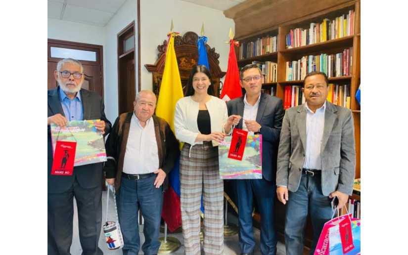 Los Compañeros Andrés Álvarez, miembro de la Comisión de Relaciones Internacionales de la Unión Patriótica, José Llanos, Miembro del Comité Central del PCC y redactor del semanario Voz y Revista Taller, Xabier Hernández, Director Responsable del semanario Voz y Carlos Donatto, Secretario de Relaciones internacionales Boyacà con Cuba-Iván Mora Godoy, fueron recibidos por nuestra Encargada de Negocios, Compañera Milagros Urbina, quien les trasladó el saludo en nombre de nuestro Buen Gobierno Sandinista y Pueblo de Nicaragua. De igual manera, les dio a conocer sobre los logros y avances en beneficio de todas las Familias nicaragüenses, resultado de nuestro Modelo Sandinista de Justicia Social, que ha restituido los Derechos del Pueblo en su totalidad.