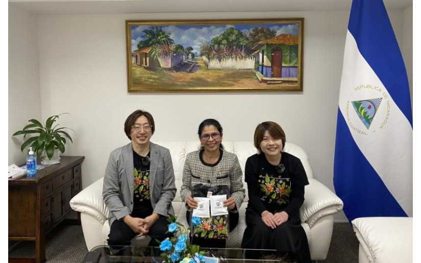 La Compañera Sandy Dávila, Embajadora de Nicaragua en Japón, atendió visita en nuestra Sede Diplomática de los Señores Soichiro Kaji y Aki Sekimoto, Representantes de Arovor Coffee Beans Shop, empresa japonesa ubicada en la Prefectura de Kagawa en el País del Sol Naciente, que desde el 2007 importa y comercializa con grano verde de café nicaragüense.
