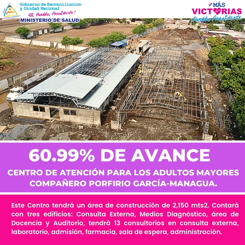 Galería de fotos del avance del Centro de Atención para los Adultos Mayores “Compañero Porfirio García” en Managua.