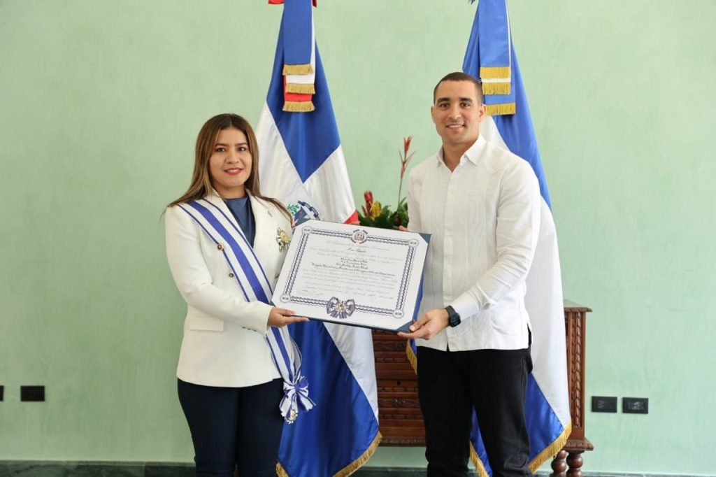La Embajadora de Nicaragua, Compañera Iris Acuña en reconocimiento a la labor diplomática recibió la Orden al Mérito de Duarte, Sánchez y Mella en el Grado de Gran Cruz Placa de Plata, otorgada por el Presidente de la República Dominicana, Señor Luis Abinader.