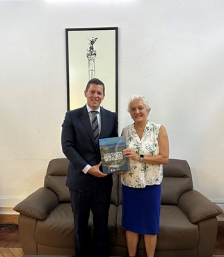 El Compañero Juan Carlos Gutiérrez Madrigal, en nombre del Buen Gobierno de Nicaragua agradeció a la Doctora Diana Alarcón González el interés en nuestro país y conversó sobre las Victorias del GRUN en reducción de pobreza, sa-lud, educación, seguridad, entre otros avan-ces que reflejan el progreso en todos los ám-bitos de la Vida Nacional.