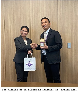 La Compañera Sandy Dávila, Embajadora de Nicara-gua en Japón realizó una visita de cortesía al Alcalde de la ciudad de Shibuya, Señor HA-SEBE Ken, con el objetivo de establecer lazos de amistad entre la Embajada de Nicaragua y la ciudad de Shibuya en Tokio.