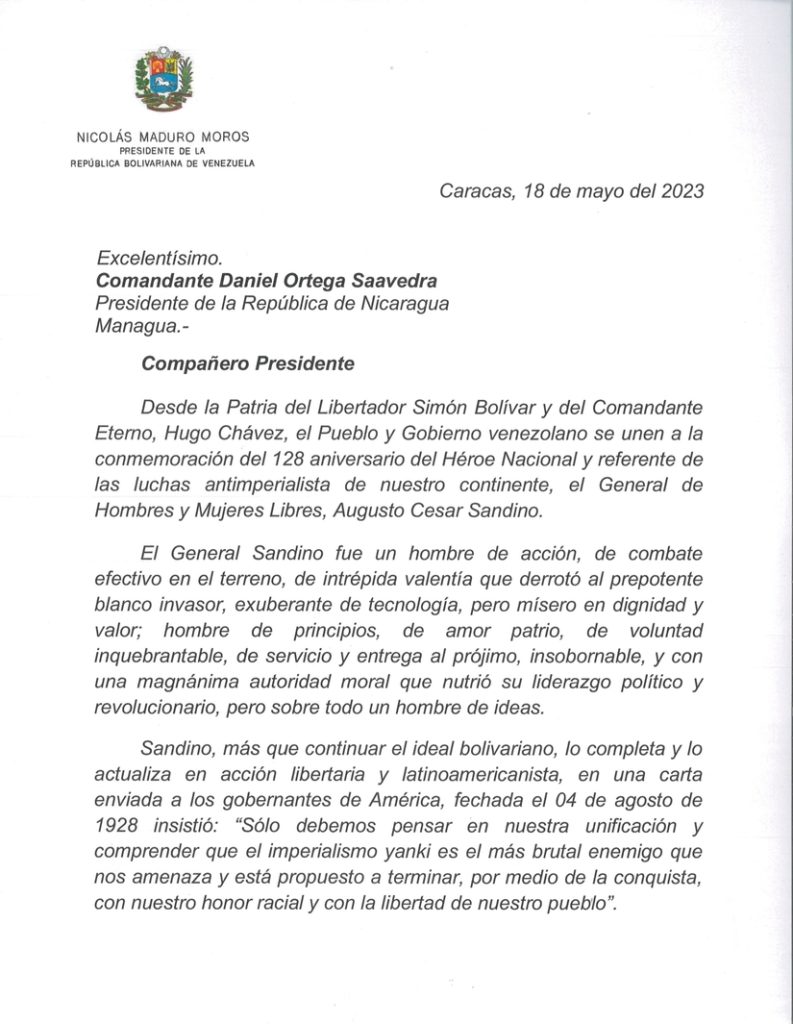 Mensaje del Presidente Nicolás Maduro Moros en el 128 Aniversario Natal del General Sandino
