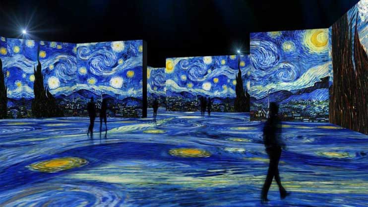 Los visitantes tendrán la posibilidad de sumergirse en más de 200 obras del renombrado pintor Holandés Vincent Van Gogh, gracias a una tecnología avanzada, denominada “imagen total”, donde se proyectan las imágenes en las paredes y el piso, logrando que sus pinturas cobren vida. Clásicos como “La noche estrellada”, “Los girasoles”, y “Terraza del café por la noche” fluirán a través de múltiples superficies, acaparando los sentidos de los visitantes con su inmenso detalle.