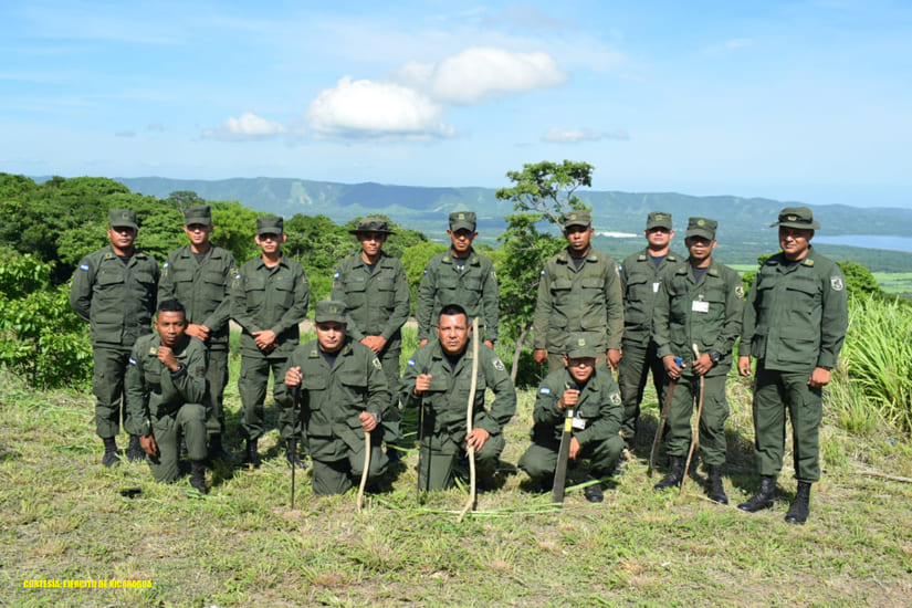 El Ejército de Nicaragua consecuente con el lema de que “Somos el Pueblo mismo uniformado trabajando en su propio beneficio”, del 21 al 23 de junio de 2023, a través de la Brigada de Infantería Mecanizada “General Augusto C. Sandino” y la Escuela Nacional de Sargentos “Sargento Andrés Castro”, en coordinación con el Ministerio del Ambiente y los recursos Naturales (MARENA) y la Brigada Municipal de Respuesta a las Emergencias (BRIMUR) de la alcaldía de Mateare, participaron en Jornada de Limpieza y Ahoyado para reforestación, en el mirador de la Laguna de Apoyeque, ubicada en la Península de Chiltepe, municipio de Mateare, departamento de Managua, como aporte a la conservación del ambiente y los recursos naturales.