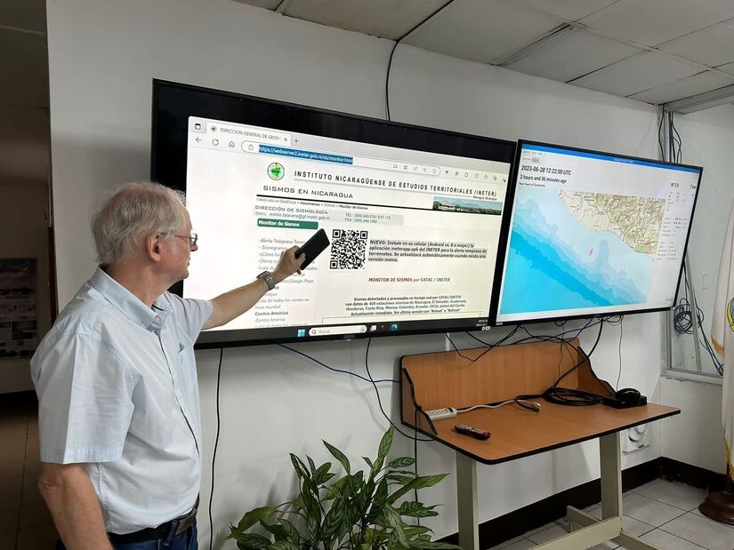 «si se detecta un terremoto de magnitud significativa que puede hacer daño en Nicaragua, se emite una alerta temprana a través de diferentes canales de comunicación, como la televisión digital, los sistemas de mensajería de emergencia y se suma la aplicación para celular», dijo Strauss.