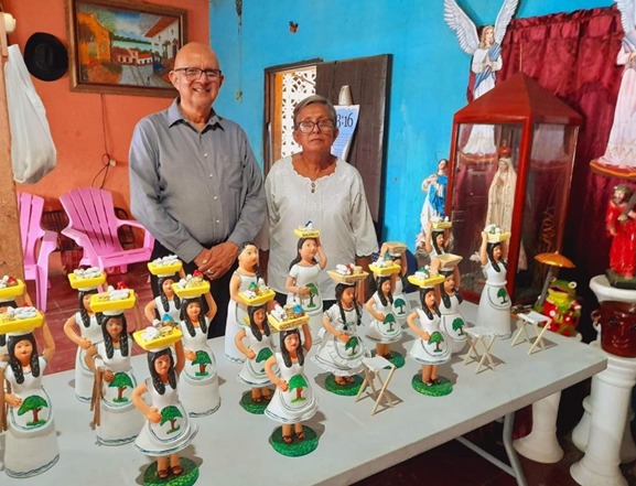 Nos recibió en su hogar y taller de trabajo en Nagarote donde tiene una exposición variada y muy completa de su producción artesanal; ella es la autora de ese producto emblemático de Nagarote: LA MUÑECA QUESILLERA. Elaborada en barro y en diferentes tamaños y estilos, este producto representa la personalidad e idiosincrasia de la mujer trabajadora de Nagarote. Las Quesilleras ofrecen por todo Nicaragua su pro-ducto, en Plazas, Parques, Calles, Fiestas Tradicionales, Hípicos, Desfiles Patrios, Carnavales… en fin, son un personaje que proyecta la cultura nagaroteña.