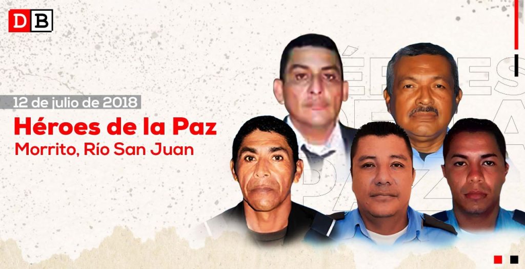 El 12 de julio de 2018, hace 5 años, en el marco del fallido intento de golpe de estado, grupos terroristas de la derecha golpista atacaron la estación policial en Morrito, Río San Juan. Fueron asesinados los compañeros: Comisionado Luis Emilio Bustos López, Sub Oficial Mayor Marlon José Requene López, Sub Oficial Lenín Ernesto Olivas Alaniz, Policía Faustino Téllez. Póstumamente fueron ascendidos con el grado de Comisionado General. También fue atacada la Alcaldía de Morrito, fueron heridos varios compañeros y falleció el señor Marvin Ugarte, maestro de primaria.