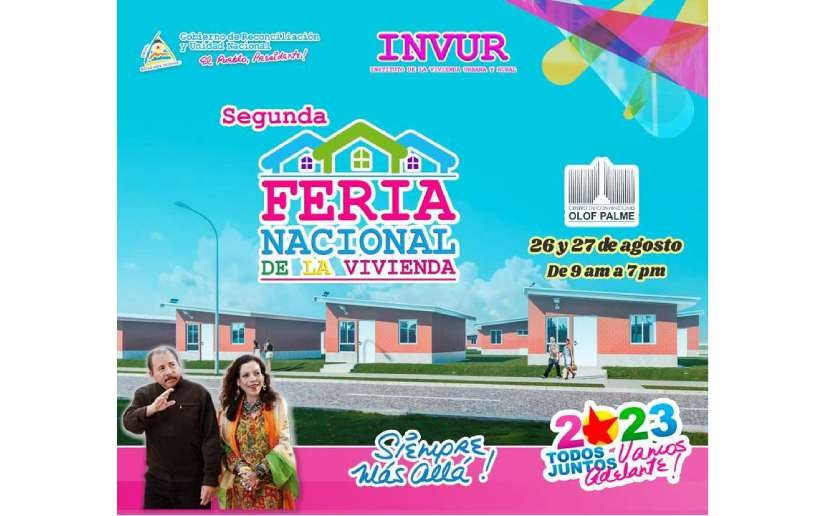 El Gobierno de Reconciliación y Unidad Nacional a través del INVUR, invita a las Familias nicaragüenses a participar en la “Segunda Feria Nacional de la Vivienda”, que se desarrollará los días 26 y 27 de agosto, en el Centro de Convenciones Olof Palme.