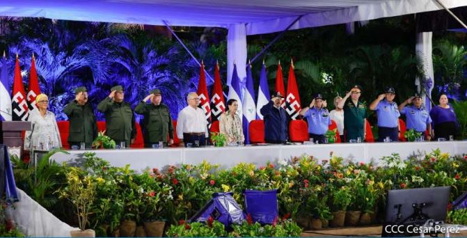 And too, today, on this day, on this date when we are commemorating the 44th Anniversary of the National Police, we salute First Commissioner General Francisco Díaz, we salute Commander-in-Chief of the Nicaraguan Army, General Julio César Avilés. Two instruments in the service of Peace: The Police and the Army, with the People, defending Peace. We also greet all the compañeros and compañeras who are presiding, who have been introduced, and their relatives.
