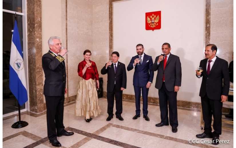 En esta ceremonia que se realizó en la embajada de Rusia, estuvieron presentes distinguidos miembros del gobierno de la República de Nicaragua, colegas del Cuerpo Diplomático e invitados especiales, quienes también participaron del brindis.