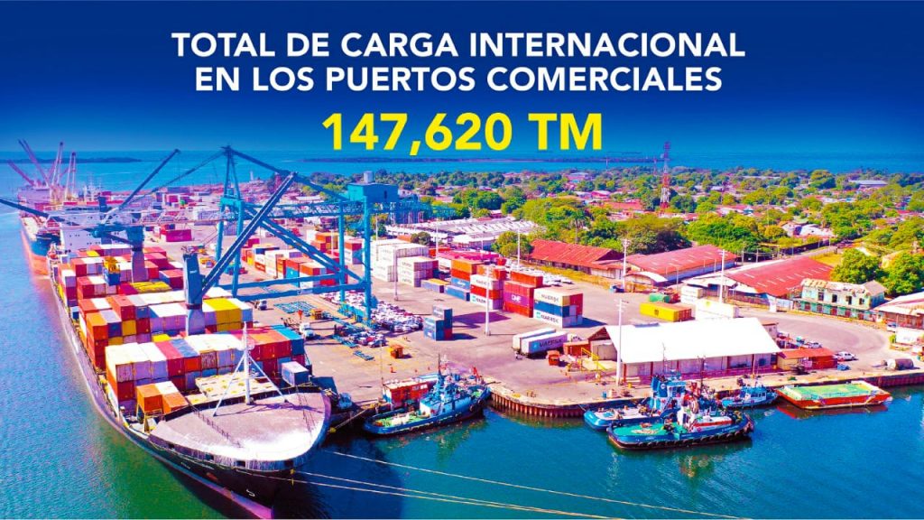 El total de carga internacional en todos los puertos comerciales fue de 147,620 toneladas.