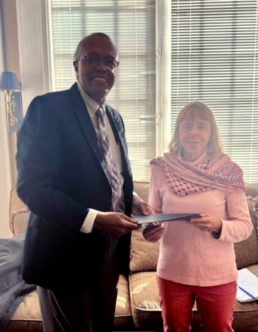 Hoy recibimos en la Embajada de Nicaragua en Washington, a Delegación de la Solidaridad con el Pueblo Palestino, encabezada por la Señora Medea Benjamin, Cofundadora de la Organización Antiguerra Code Pink.