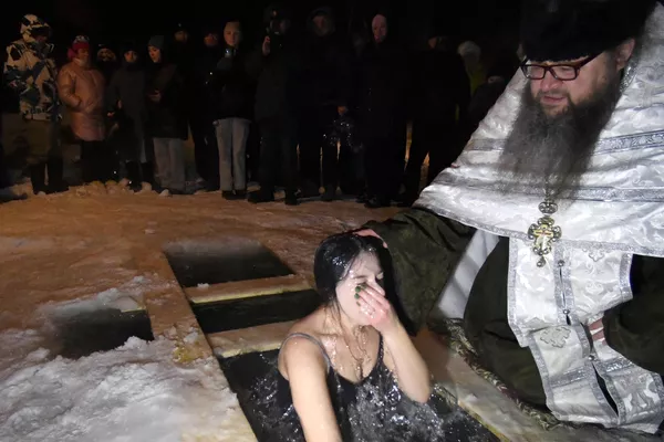 La Epifanía se celebra ampliamente en Rusia. En todo el país se organizan oficios religiosos y baños bautismales en pozos de hielo.