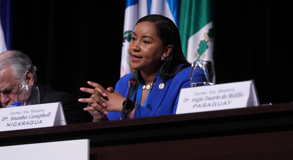 La Compañera Campbell participó en el panel ministerial, donde expuso los avances, logros, clima óptimo, incentivos y amplias oportunidades que ofrece la Tierra de Lagos y Volcanes tanto para los inversionistas como los turistas, gracias a las políticas públicas promovidas por el Gobierno del Presidente-Comandante Daniel Ortega, y su Vicepresidenta Compañera Rosario Murillo.