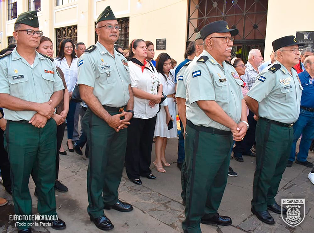 El Ejército de Nicaragua consecuente con el lema de que “Somos el Pueblo mismo uniformado trabajando en su propio beneficio”, el 6 de febrero de 2024, a través del rector de la Universidad de Defensa de Nicaragua “4 de mayo” (UDENIC), General de Brigada Manuel Giovanni Guevara Rocha, acompañado por el jefe de la Secretaría General, General de Brigada Lester Vidal Gallo Sandoval y el jefe del 2 Comando Militar Regional, Coronel Cab. Blindada DEM Néstor Urbina Ferreti, participaron en acto cultural en conmemoración del 108 aniversario del paso a la inmortalidad del “Héroe Nacional”, Prócer de la Independencia Cultural de la Nación y Poeta Universal Rubén Darío, realizado en el municipio de León, departamento de León.