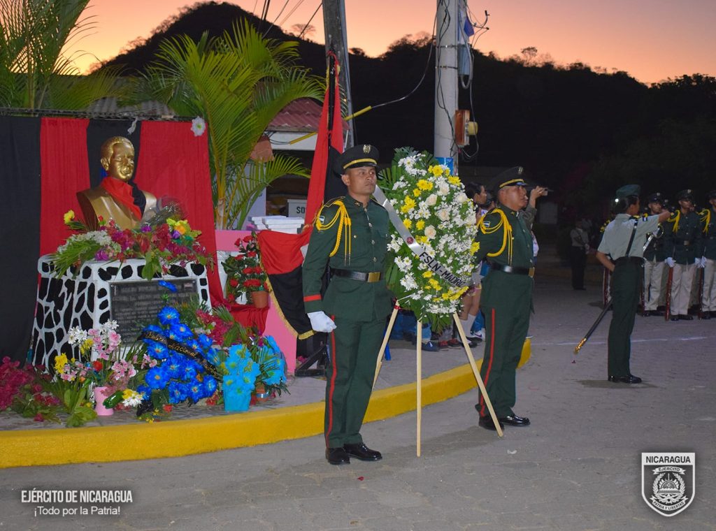 El Ejército de Nicaragua consecuente con el lema de que “Somos el Pueblo mismo uniformado trabajando en su propio beneficio”, el 9 de febrero de 2024, a través del jefe del 1 Comando Militar Regional, Coronel Inf. DEM Fabio de Jesús Zelaya Reyes, participó en el acto en conmemoración al 59 aniversario del paso a la inmortalidad del Héroe Nacional, Coronel Santos López, en el municipio de Yalagüina, departamento de Madriz, en homenaje a su legado histórico y patriótico se depositó ofrenda floral ante el busto erigido en su honor.