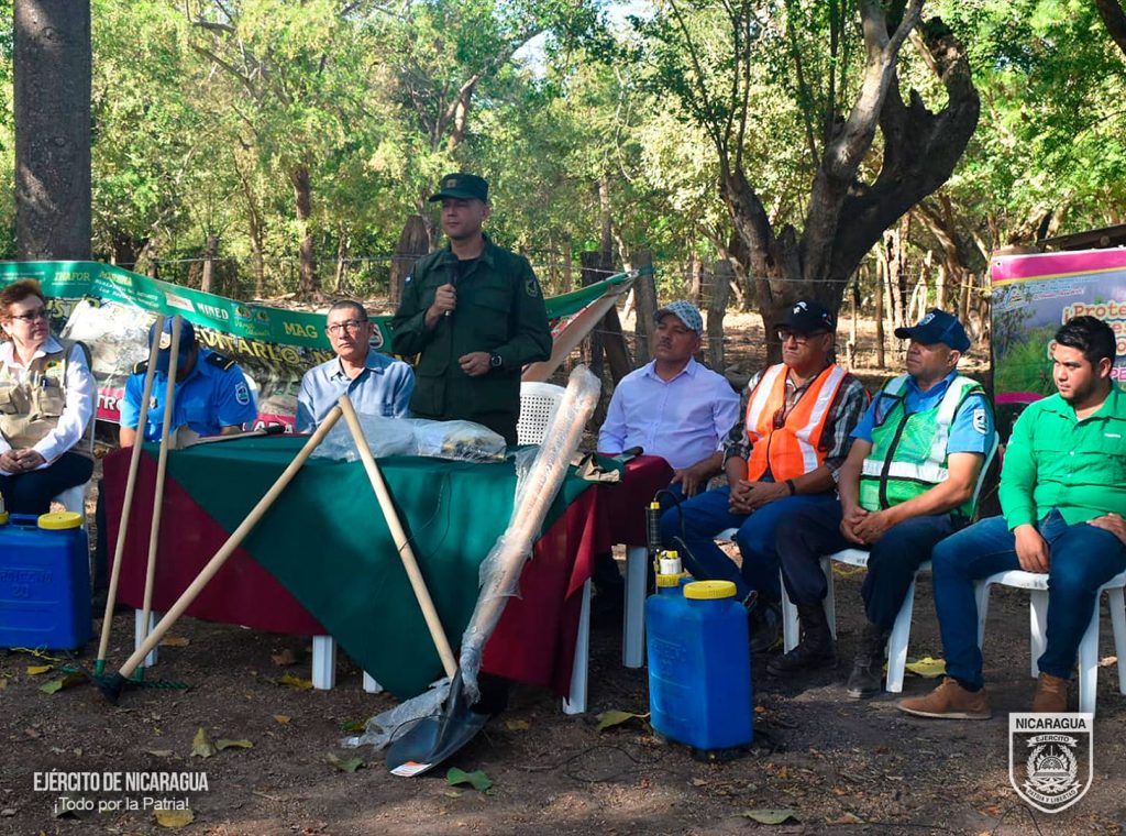 El alcalde del municipio de Larreynaga, doctor Enrique Gómez Toruño, expresó: «…sabemos el compromiso que el Ejército de Nicaragua ha tenido con el cuido, promoción y protección del medio ambiente en Nicaragua, en diferentes escenarios, en los desoves de tortugas…en los incendios forestales, en diferentes situaciones donde se ha requerido la participación del Ejército de Nicaragua, ahí ha estado, acompañando las luchas de las familias nicaragüenses, por preservar nuestra fauna, por preservar nuestra flora».