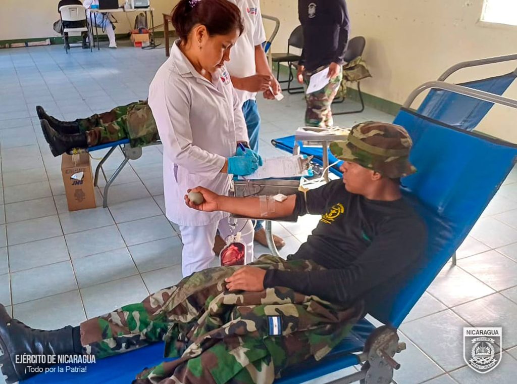 El Ejército de Nicaragua consecuente con el lema de que “Somos el Pueblo mismo uniformado trabajando en su propio beneficio”, el 19 de febrero de 2024, a través del 4 Comando Militar Regional, en coordinación con el Banco Nacional de Sangre, participó en jornada de donación voluntaria de sangre.