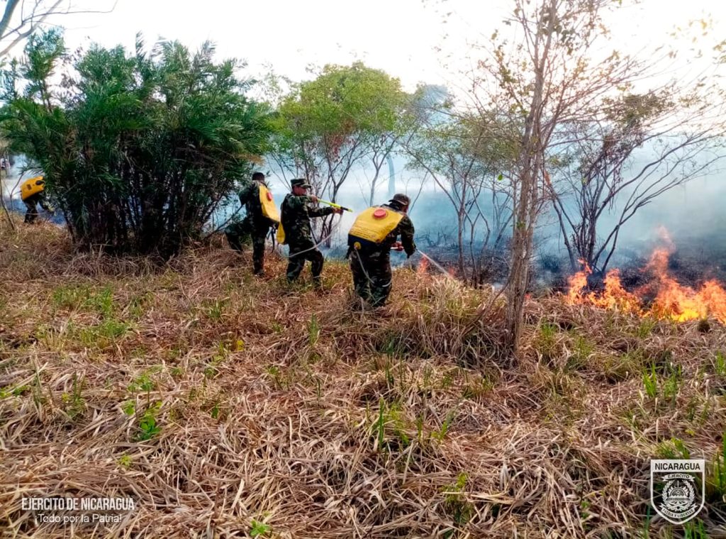 El Ejército de Nicaragua consecuente con el lema de que “Somos el Pueblo mismo uniformado trabajando en su propio beneficio”, el 19 de febrero de 2024, a través del 5 Comando Militar Regional, participó en sofocación de incendio forestal en la comunidad San Lucas, municipio de Acoyapa e incendio de maleza en la comunidad de Santa Rosa, municipio de Juigalpa, departamento de Chontales, logrando extinguir el fuego en un área de 45 manzanas.