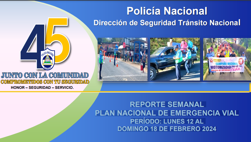 REPORTE SEMANAL PLAN NACIONAL DE EMERGENCIA VIAL PERÍODO: LUNES 12 ALDOMINGO 18 DE FEBRERO 2024
