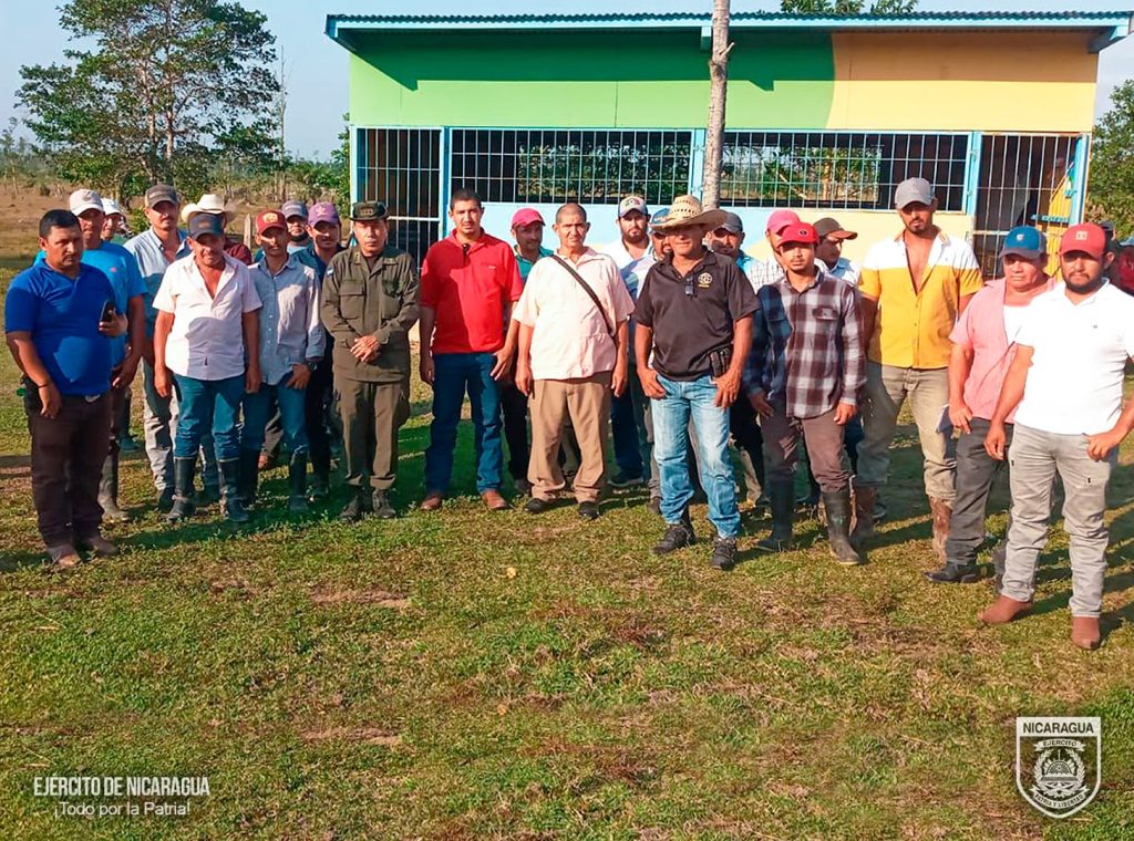 El Ejército de Nicaragua consecuente con el lema de que “Somos el Pueblo mismo uniformado trabajando en su propio beneficio”, el 20 de febrero de 2024, a través del jefe del Batallón Ecológico “BOSAWAS”, Coronel Inf. DEM José Román Espinoza Iglesias, participó en reunión con 50 productores y ganaderos de las comunidades de Nueva Esperanza y Kisawas, del municipio de Prinzapolka, Región Autónoma de la Costa Caribe Norte, con el objetivo de escuchar sus planteamientos relacionados al fortalecimiento del Plan Permanente de Seguridad en el Campo y la Lucha Contra el Abigeato.