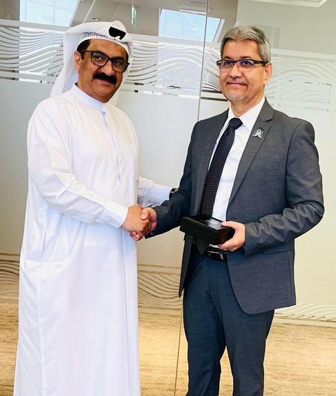 La Delegación de la República de Nicaragua, integrada por los Compañeros Jesús Bermúdez, Ministro de Fomento, Industria y Comercio (MIFIC) y Mohamed Lashtar, Embajador de Nicaragua ante los Emiratos Árabes Unidos, sostuvieron un fraterno encuentro con el Señor Jamal Bin Saif Al Jarwan, Secretario General del Consejo de los Emiratos Árabes Unidos para las Inversiones Internacionales, con el propósito de fortalecer las relaciones de cooperación entre ambos Países, para el fomento de las Inversiones y el Comercio.