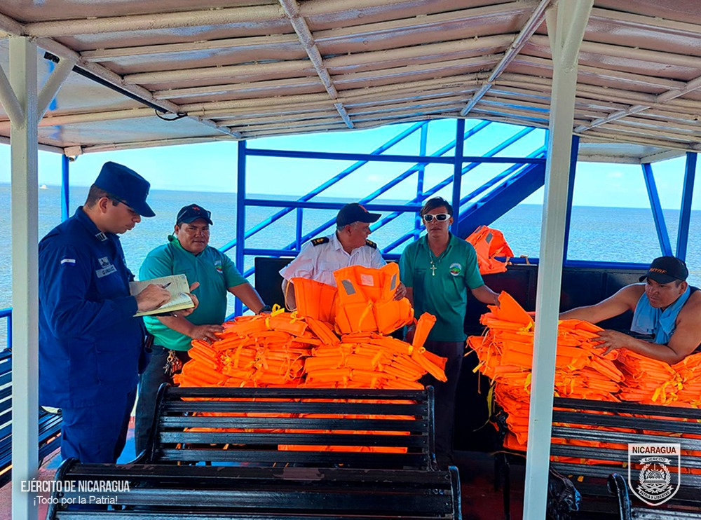 El Ejército de Nicaragua consecuente con el lema de que “ Somos el Pueblo mismo uniformado trabajando en su propio beneficio ” , el 11 de marzo de 2024, a través del Destacamento Naval de Aguas Interiores “Comandante Hilario Sánchez Vázquez”, en coordinación con la Dirección General de Transporte Acuático (DGTA), realizó inspección a las embarcaciones tipo ferry y embarcación tipo lancha de transporte de carga y pasajeros en las rutas acuáticas del puerto del municipio de San Jorge hacia el puerto del municipio de Moyogalpa y San José del Sur en la isla de ometepe, departamento de rivas.