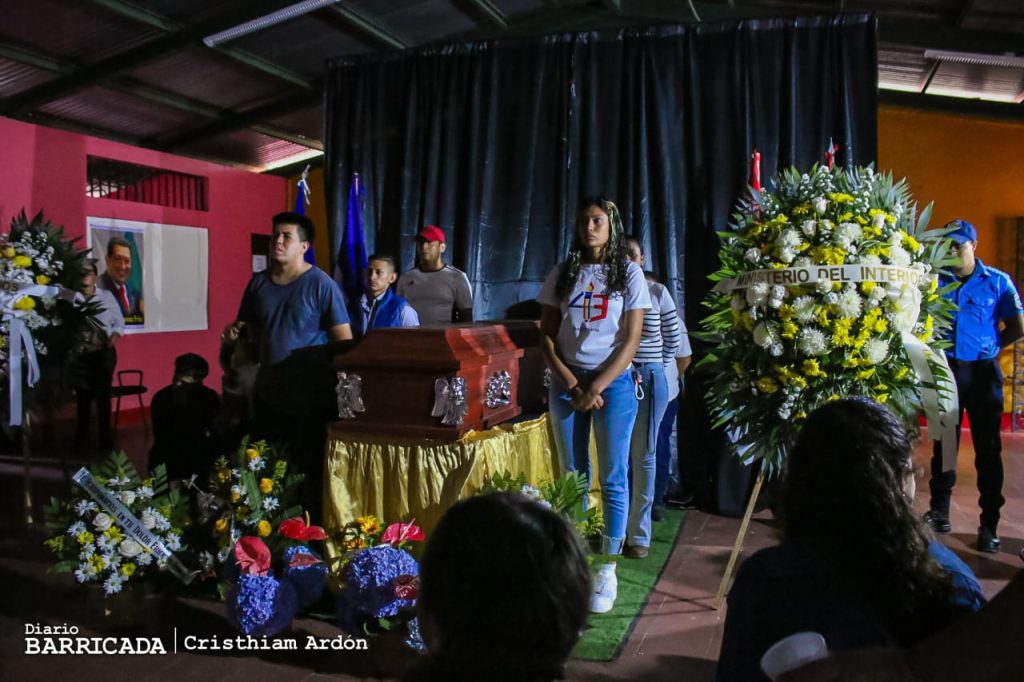 En su honor realizamos merecido homenaje. La Compañera Amelia Coronel, Ministra del Interior, Compañera Johana Flores, Ministra de la Familia, Compañero Iván Lacayo, Director Ejecutivo de INIFOM, Compañera Darling Hernández del Consejo Nacional de Juventud y Consejo Nacional del Movimiento Ambiental Guardabarranco, Bomberos Unidos de Nicaragua del Ministerio del Interior, Jefatura Departamental de la Policía Nacional, Autoridades departamentales y municipales rendimos guardia de honor, custodiando su memoria.
