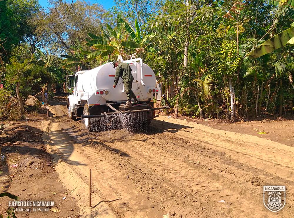 El Ejército de Nicaragua consecuente con el lema de que “Somos el Pueblo mismo uniformado trabajando en su propio beneficio”, el 18 de abril de 2024, a través del Cuerpo de Ingenieros “General de Brigada Miguel Ángel Ortez”, en coordinación con autoridades municipales, realizaron la inauguración de 146 metros lineales de adoquinado y 296 metros lineales de bordillos, en la comunidad “Camino Verde II etapa”, municipio de El Rosario, departamento de Carazo.