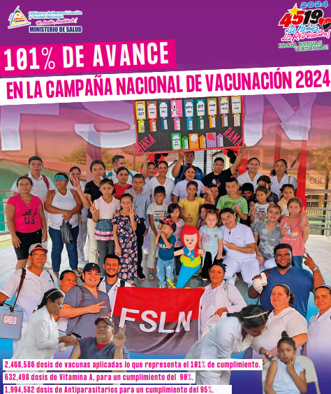Este Sábado 20 y Domingo 21 de abril desarrollamos los días centrales de la Campaña Nacional de Vacunación (2024), en todos los Municipios de País, en Paz y Alegría con desfiles, caminatas, carrozas con bailes, piñatas y música.