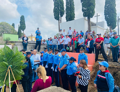 En el Municipio de Jinotepe, las Unidades de Victoria por la Paz, Policía Nacional, Ministerio del Interior, junto a familiares rindieron homenaje a la Comisionada General Juana Francisca Aguilar Cano, con entrega de ofrenda floral en el cementerio municipal, al cumplirse 6 años de su asesinato a manos de los golpistas cuando cumplía con su deber en el restablecimiento del orden y La Paz. Se recordó el ejemplo y misión de servicio de la Compañera Heroína de la Paz, y se ratifica el compromiso de seguir defendiendo la Paz y Tranquilidad en el País.