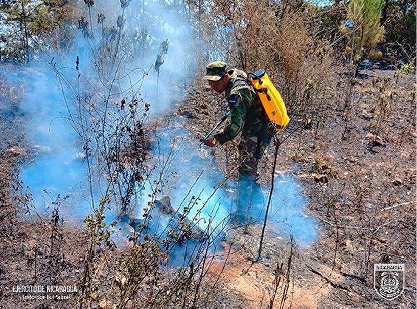 El Ejército de Nicaragua consecuente con el lema de que «Somos el Pueblo mismo uniformado, trabajando en su propio beneficio», el 27 de abril de 2024, a través del 1 Comando Militar Regional, en coordinación con instituciones del Estado, participó en sofocación de incendio forestal y de maleza en la comunidad La Ilusión, municipio de Somoto, departamento de Madriz, logrando extinguir un fuego en un área de 240 manzanas de bosque y pastizales.