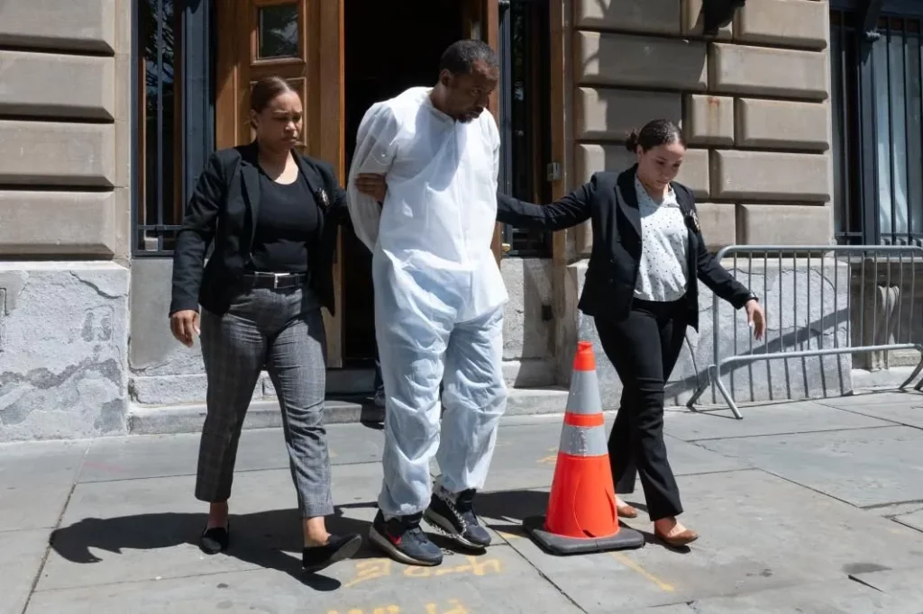 Mantenía la cabeza gacha y vestía un traje blanco de Tyvek cuando dos detectives de la unidad de la División de Víctimas Especiales lo acompañaron hasta un automóvil y lo llevaron al tribunal penal del Bronx. No respondió preguntas de los periodistas sobre el crimen.
