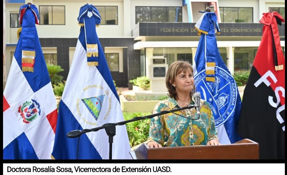 La Doctora Rosalía Sosa, Vicerrectora de Extensión de la UASD, expresó la admiración de la comunidad universitaria por Sandino y su gesta heroica en contra de la intervención yanquee en Nicaragua.