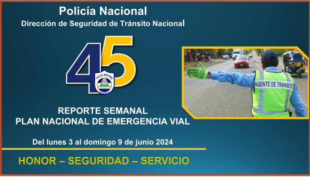 Según informe semanal brindado por la Dirección General de Tránsito Nacional reporta la disminución en personas fallecidas, colisiones y lesionados, registrados durante la semana del lunes 3 al domingo 9 de junio del presente año.