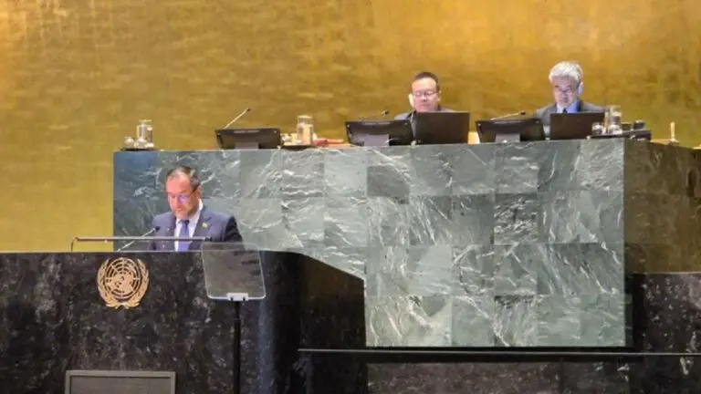 El canciller de Venezuela, Yván Gil, instó este jueves ante la Asamblea General de las Naciones Unidas a que se ponga fin a todas las medidas coercitivas unilaterales (MCU) que aplican naciones poderosas contra los Estados en desarrollo, a las que consideró ilegales y crímenes de lesa humanidad por cuanto suponen una violación a los DD.HH. básicos de poblaciones enteras.