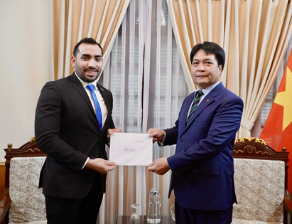 El Compañero Mario José Armengol Campos, presentó Copia de Estilo de la Carta Credencial al Embajador Nguyen Viet Dung, Director del Departamento de Protocolo de Estado.