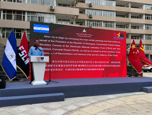 El Compañero Wang Yulin, resaltó que “Hace 45 años, el Comandante Daniel Ortega y otros revolucionarios nicaragüenses heredaron el deseo incumplido del General Sandino, unieron y condujeron al Pueblo Nicaragüense a defender con firmeza la soberanía nacional y la independencia. Después de arduas luchas, acabaron con la Dictadura Somocista, lograron la Victoria Revolucionaria y abrieron una nueva página en la historia nicaragüense. Nos complace ver que 45 años después, bajo el liderazgo del Comandante Daniel Ortega y la Compañera Rosario Murillo, la economía y la sociedad nicaragüenses han logrado avances significativos, y el bienestar de su Pueblo ha seguido mejorando. Se ha convertido en un país Pacífico, Unido y Feliz en Centroamérica.”