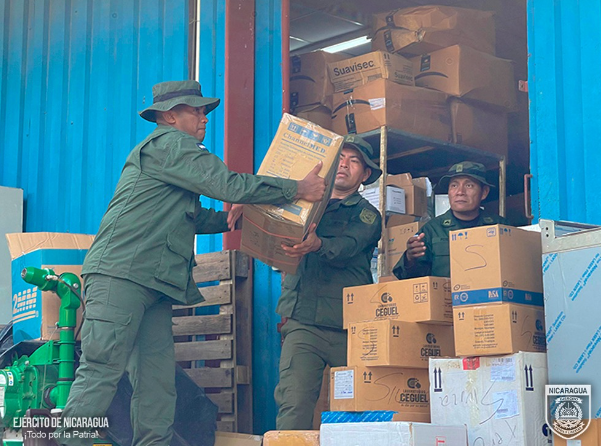 El Ejército de Nicaragua consecuente con el lema de que “Somos el Pueblo mismo uniformado trabajando en su propio beneficio”, el 9 de agosto de 2024, a través del Batallón Ecológico “BOSAWAS”, en coordinación con el Ministerio de Salud (MINSA), realizó el descargue de 1,330 cajas de insumos médicos, material de reposición periódica y laboratorio, en la bodega del Hospital “Carlos Centeno”, del municipio de Siuna, Región Autónoma de la Costa Caribe Norte.