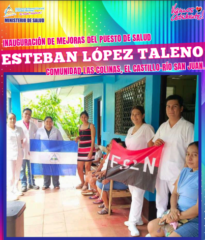 También, mañana Jueves, entregaremos mejorado el Puesto de Salud “Esteban López Taleno”, Comunidad Las Colinas, Municipio El Castillo, Río San Juan; para atender en condiciones dignas a más de mil personas que habitan en tres Comunidades de este Municipio (Inversión 305 mil córdobas).