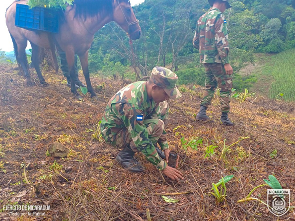 El Ejército de Nicaragua ha demostrado su compromiso con la preservación ambiental al participar activamente en una jornada de reforestación en la comarca El Raizón.