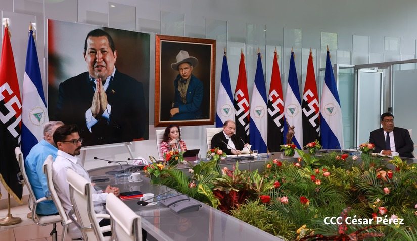 El Comandante Daniel Ortega y la Compañera Rosario Murillo, estuvieron acompañados por el Embajador de la República Bolivariana de Venezuela, José Arrúe, junto con Ansonith Albano, Responsable de Asuntos Políticos de la Embajada, y Valdrack Ludwing Jaentschke Whitaker, Asesor en Políticas y Asuntos Internacionales.